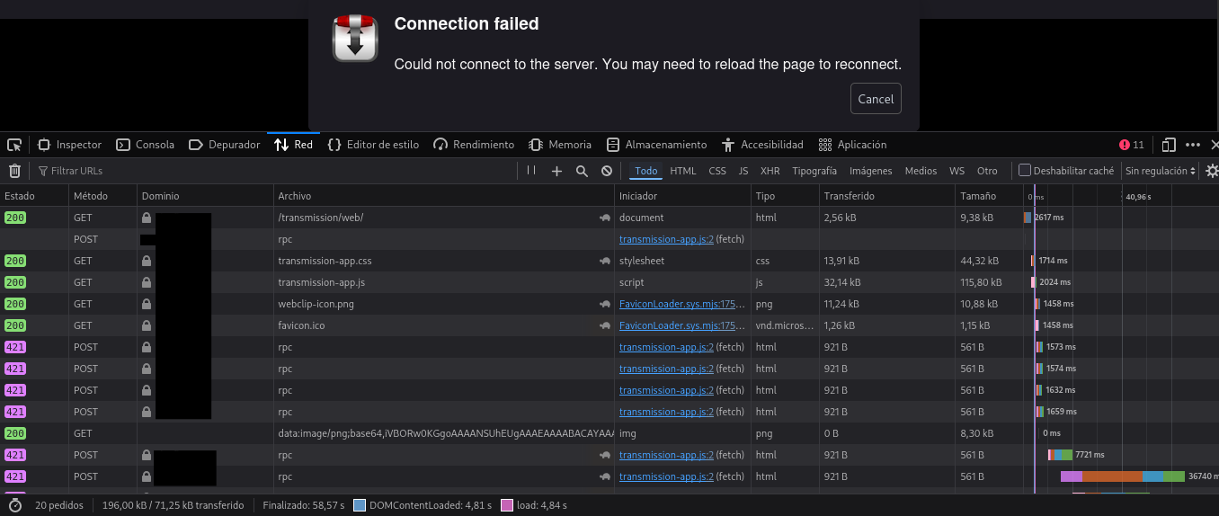 In the other hand: a remote (Fragments) on a client computer was linked to Transmission on the server using credentials. It is now unlinked.